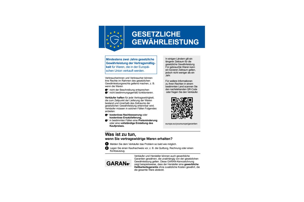 Ist die Kaufsache mangelhaft, können Sie sich daher in jedem Fall an uns im Rahmen der gesetzlichen Gewährleistung halten, unabhängig davon, ob ein Garantiefall vorliegt oder die Garantie in Anspruch genommen wird.