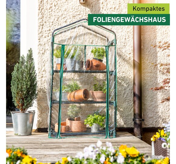 ​Kompaktes Foliengewächshaus zum geschützten Aufziehen Ihrer Pflanzen