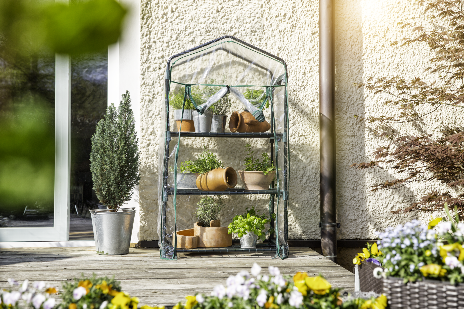 - PFLANZENANZUCHT AUF KLEINEM RAUM - Schlankes Gewächshaus zur An- und Aufzucht von Kräutern und Gemüsepflanzen auf Balkon und Terrasse.
