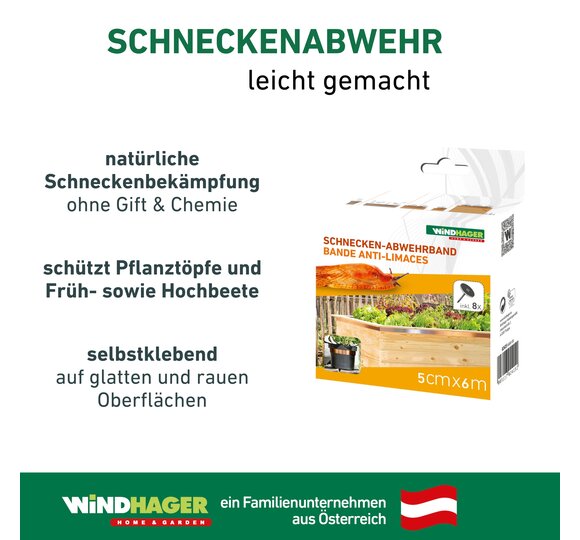 Durchlöcherter Salat und angeknabberte Erdbeeren können einem schnell die Freude am eigenen Garten verderben. Mit einem Kupferband treten Sie der Schneckenplage endlich entgegen - und das ganz tierfreundlich. Das Abwehrband wird rund um Pflanztöpfe, Frühbeete und Hochbeete geklebt. Gut befeuchtet bildet sich eine Oxidationsschicht, welche für Schnecken eine unüberwindbare Barriere darstellt. Kommen sie nämlich mit dem Kupfer in Kontakt, gibt das Kupfer kleine elektrische Schläge ab. Diese sind für die Schnecken so unangenehm, dass sie die Flucht ergreifen und umkehren. Die natürliche Schneckenbekämpfung mit einem Kupferband funktioniert ganz ohne Einsatz von Gift und Chemie.