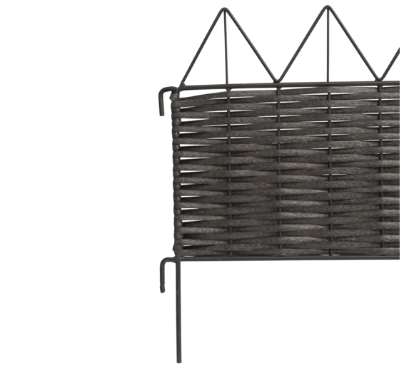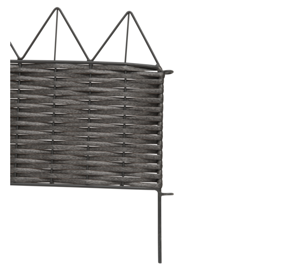 Aus witterungsbeständigem Kunststoff-Rattan in Zackenform, in Handarbeit auf einen pulverbeschichteten Metallrahmen geflochten, extrem UV- und witterungsbeständig. Einzelne Beeteinfassungen können durch seitliche Haken miteinander verbunden werden.