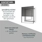 Der Rahmen aus pulverbeschichteten Aluminiumprofilen wird mittels verstellbarer Einhängefedern in den Fensterrahmen eingehängt - komplett bohrfrei. Die schmale Kassette beinhaltet das robuste Fiberglasgewebe, welches mit Hilfe der höhenverstellbare Griffschiene komfortabel bedient werden kann. Eine integrierte Rollobremse verhindert das unkontrollierte Zurückschnallen des Gewebes. Zwei Dichtungsbürsten gewähren rundumlaufenden Schutz vor Insekten und bei starkem Wind. Der Rahmen ist individuell kürzbar.