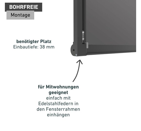 • BOHRFREIE, KLEMMFREIE BEFESTIGUNG FÜR SICHEREN HALT – Einfaches Einhängen mit Edelstahlfedern in den Fensterrahmen. Dieser bleibt unversehrt.
