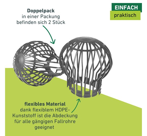 - DOPPELPACK – In einer Packung befinden sich 2 Stück Dachrinnen-Fallrohr Abdeckungen