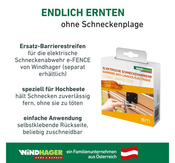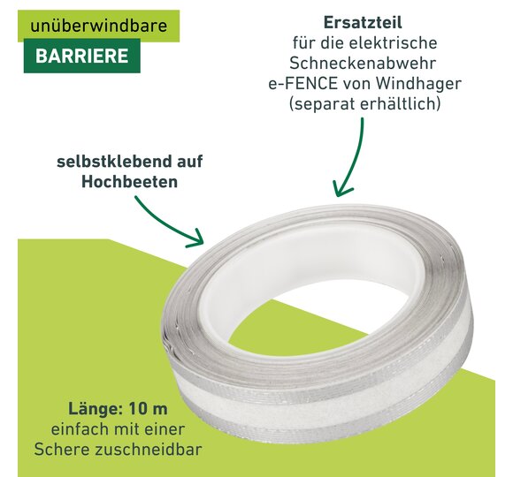 - SCHNECKENSCHUTZ-ZUBEHÖR – Ersatz-Barrierestreifen für die elektrische Schneckenabwehr e-FENCE von Windhager, speziell für Hochbeete