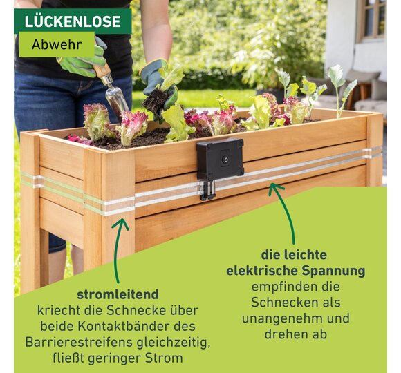- UNÜBERWINDBARE BARRIERE – Der stromleitende Barrierestreifen rund um das Hochbeet hindert Schnecken daran, die Pflanzen zu erreichen, ohne sie zu töten
