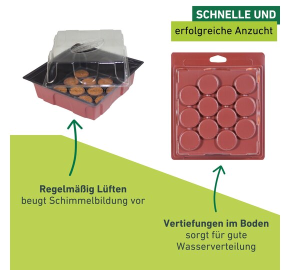 - INKLUSIVE 12 QUELLTABLETTEN - Torffreie Anzuchttabs beschleunigen den Keimvorgang, sorgen für schnelles Pflanzenwachstum und gute Wurzelbildung. Immer leicht feucht halten!