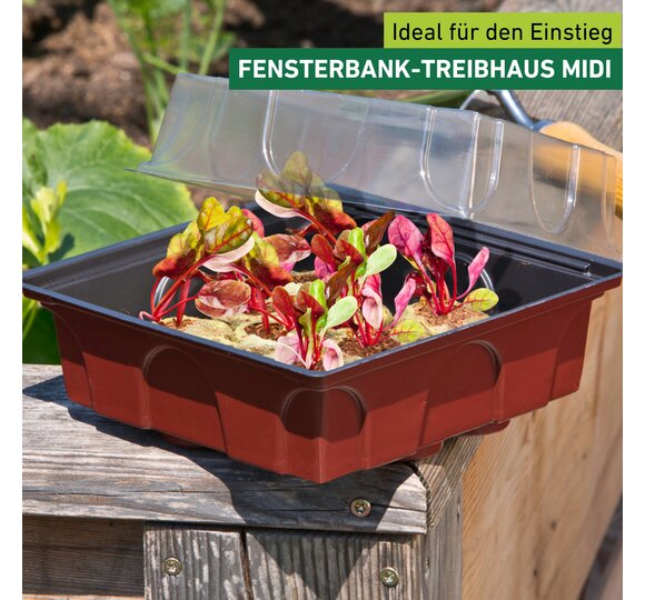- Fensterbank-Treibhaus Midi mit Quelltabs