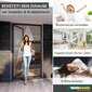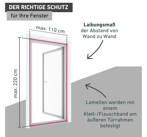 - BOHRFREIE MONTAGE – Befestigung mittels Klett-Flauschband am äußeren Türrahmen, jederzeit abnehmbar