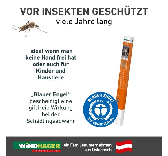 • ZERTIFIZIERT MIT DEM BLAUEN ENGEL – Das Umweltzeichen „Blauer Engel“ bescheinigt dem Fliegengitter eine giftfreie Wirkung bei der Schädlingsabwehr (DE-UZ 34)