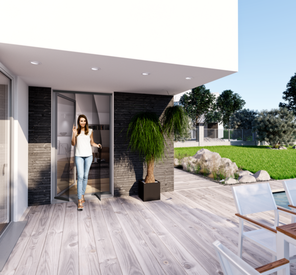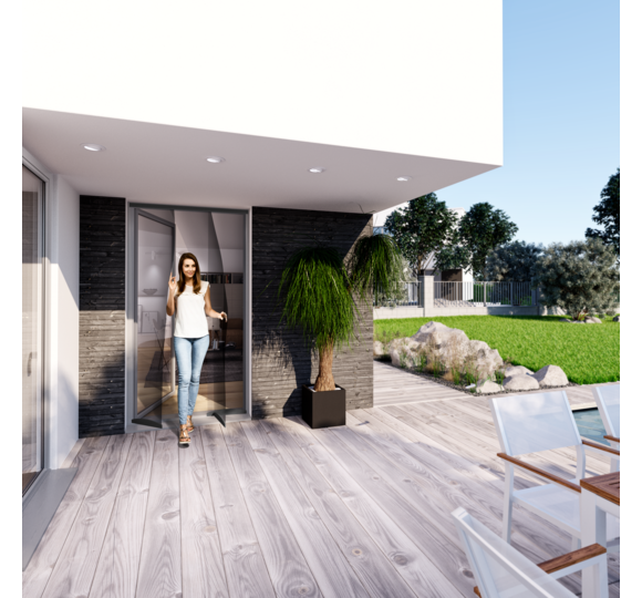 • Flächenbündige Türen: Türen - bei denen von außen betrachtet – Türrahmen und Türflügel bündig abschließen. Es bildet sich kein Vorsprung.