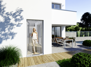 • Türen mit oder ohne Wetterschenkel: Türen an deren Türflügel ein/kein abgeschrägtes Element angebracht ist (welches dem Ablauf von Regenwasser dient).