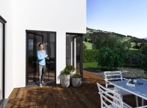 • Anbringung innen - wenn die Balkon-/Terrassentür nach außen öffnet