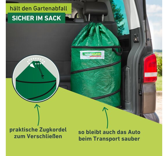 So bleibt der Gartenabfall im Sack und das Auto sauber. Nach Gebrauch kann dieser Sack mit wenigen Handgriffen wieder platzsparend zusammengelegt werden.