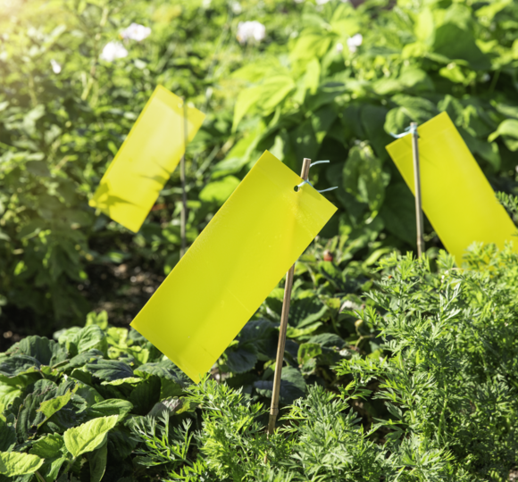 Mithilfe von Gelbtafeln lässt sich auf natürliche Art feststellen, ob, und wie stark, Pflanzen von Schadinsekten befallen sind. Außerdem helfen Gelbtafeln bei der Reduzierung und Vorbeugung eines Befalls. Die Insekten werden von der gelben Farbe der Tafel angezogen und somit von den Pflanzen weggelockt. Lassen sie sich auf der Gelbtafel nieder, so bleiben sie darauf kleben. Die beidseitige Beleimung der Tafel sorgt für doppelten Fangerfolg.
