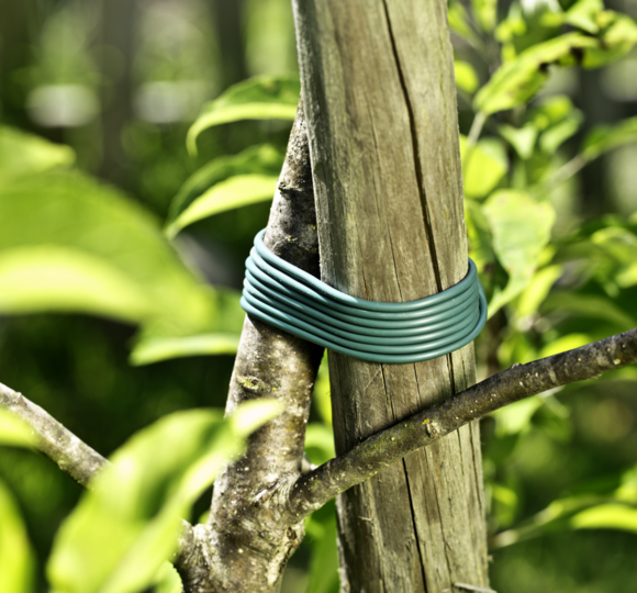 Elastische Schnur aus Kunststoff, die mit der Pflanze mitwächst.