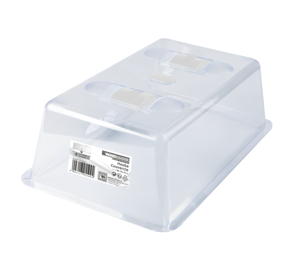 Die stabile Abdeckhaube hat zwei verstellbare Lüftungsklappen zur Steuerung von Temperatur, Luftzufuhr und Luftfeuchtigkeit im Inneren des Gewächshauses. Der durchsichtige, abgeflachte Deckel sorgt dafür, dass die Pflanzen genügend Licht bekommen. Durch die große Deckelhöhe von 13 cm können die Setzlinge lange im Schutz des Gewächshauses bleiben. Hergestellt aus langlebigem Kunststoff, ist die Haube leicht zu reinigen und mehrere Jahre verwendbar.