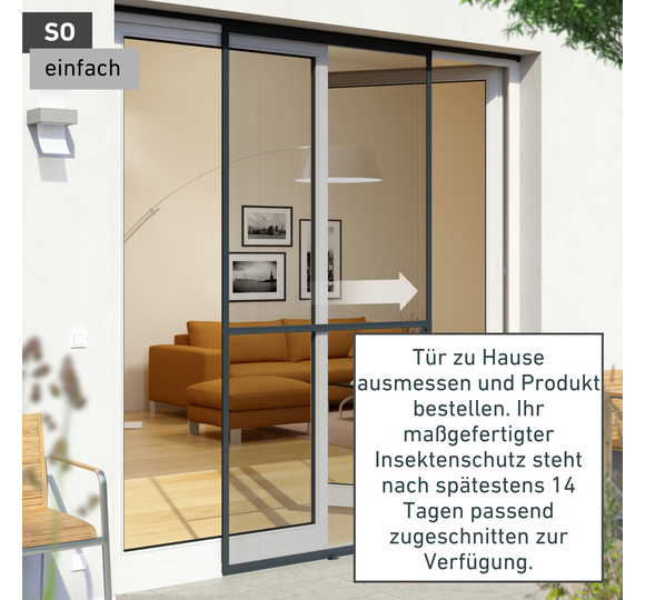 Optimieren Sie den Schutz Ihres Zuhauses vor unerwünschten Insekten mit unseren maßgefertigten Insektenschutz-Türen. Egal, ob Rahmentüren, Plisseetüren, Schiebetüren oder Rollotüren – unser vielfältiges Angebot wird speziell nach Ihren Wünschen und den exakten Maßen Ihrer Türen angefertigt. Diese individuellen Lösungen ermöglichen es Ihnen, Ihr Zuhause effizient zu belüften, ohne lästige Insekten hereinzulassen. Unsere maßgeschneiderten Insektenschutz-Türen vereinen Funktionalität mit Ästhetik, sodass Sie nicht nur einen effektiven, sondern auch einen stilvollen Schutz genießen.