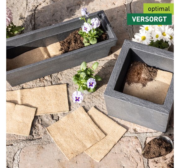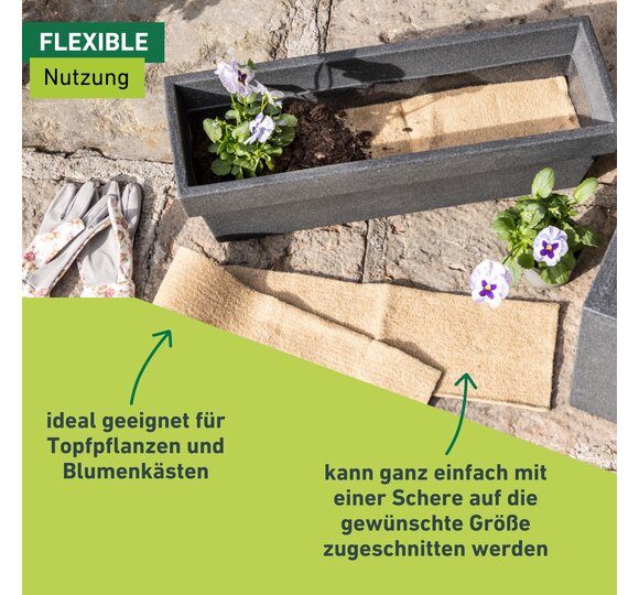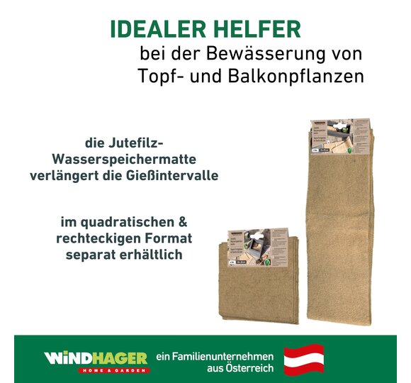 Die Jutefilz Wasserspeichermatte ist der ideale Helfer, wenn es um die Bewässerung von Topf- und Balkonpflanzen geht. Sie speichert Wasser und hält die Pflanzen gleichmäßig feucht. Dadurch kann der Gießaufwand reduziert und Staunässe gezielt vermindert werden.