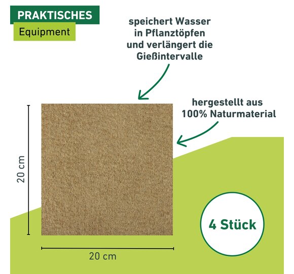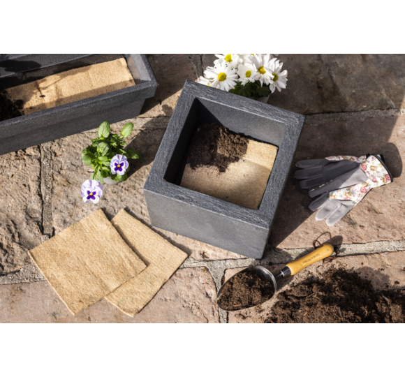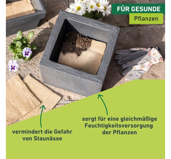 Die Matten sind im quadratischen und rechteckigen Format erhältlich und können ganz nach Bedarf mit einer Schere zugeschnitten werden. Und das Beste: die Wasserspeichermatten bestehen aus 100% Naturmaterial.