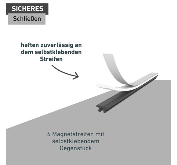 Verlassen Sie sich auf unsere robusten Magnetschließer, um Ihre Fliegengitter an Fenstern und Türen sicher und fest geschlossen zu halten. Das Set enthält 6 Magnetstreifen und selbstklebende Gegenstücke, die sich mühelos in die Profilnut einschieben lassen. Als ideale Ergänzung zu bestehenden Scharnieren sorgen diese Magnetschließer dafür, dass Ihre Insektenschutztür stets fest verschlossen ist, sodass Stechmücken keine Chance haben, eine Lücke zu finden. Kompatibel mit den Spannrahmen-Fenster und -Türen der Linien PLUS und EXPERT, ist dieses nützliche Zubehör die perfekte Wahl für ein insektenfreies Zuhause.
