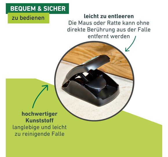 - CLEVERER SCHUTZMECHANISMUS – Schnappt erst nach Anheben der Köderklappe durch den Nager zu