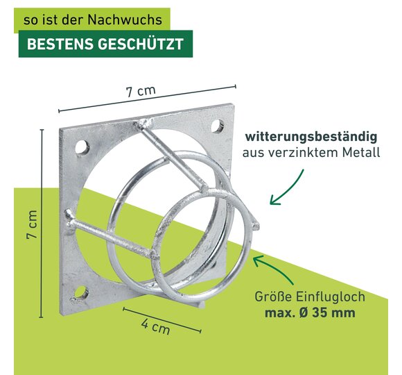 - WITTERUNGSBESTÄNDIGES MATERIAL - Dank verzinktem Metall ist der Nesträuberschutz lange einsetzbar