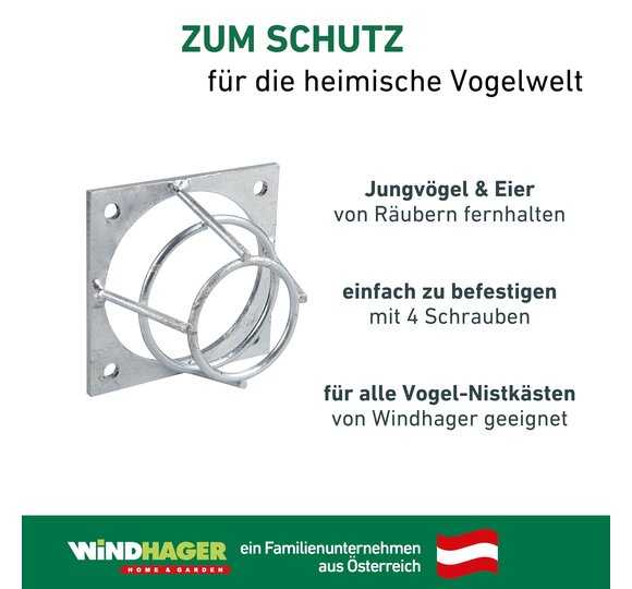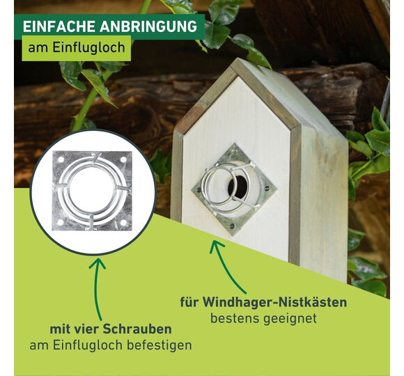 - PASSEND FÜR WINDHAGER-NISTKÄSTEN – Der Nesträuberschutz kann an allen Nistkästen von Windhager angebracht werden. Größe Einflugloch: max. Ø 35 mm