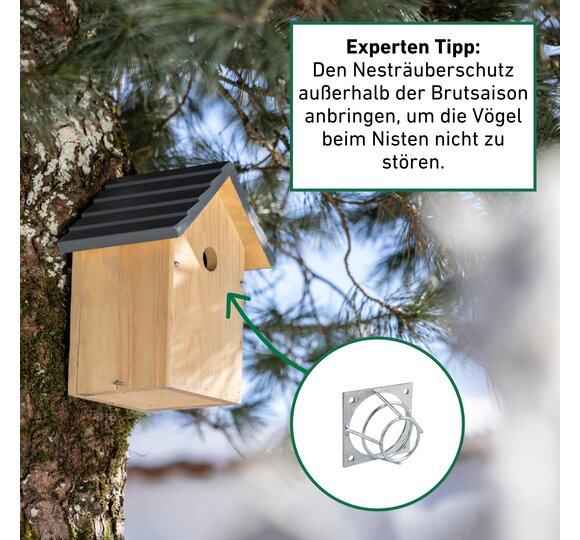 Tipp: Es wird empfohlen, den Nesträuberschutz außerhalb der Brutsaison anzubringen, um die Vögel beim Nisten nicht zu stören.