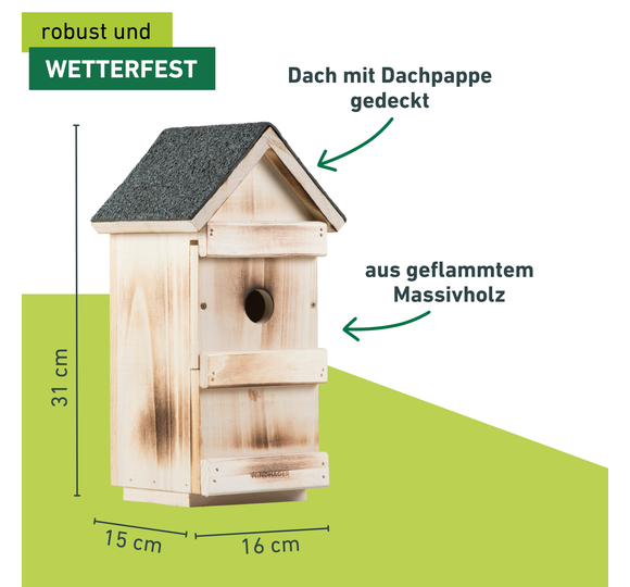 - SICHERES BRUTQUARTIER – Im Nistkasten sind die Vögel gut vor Witterungseinflüssen geschützt