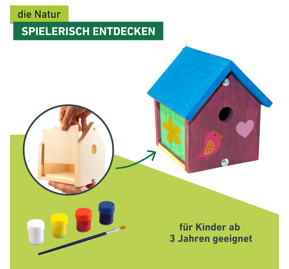 Nistkasten-Bausatz mit Farben zum Bemalen