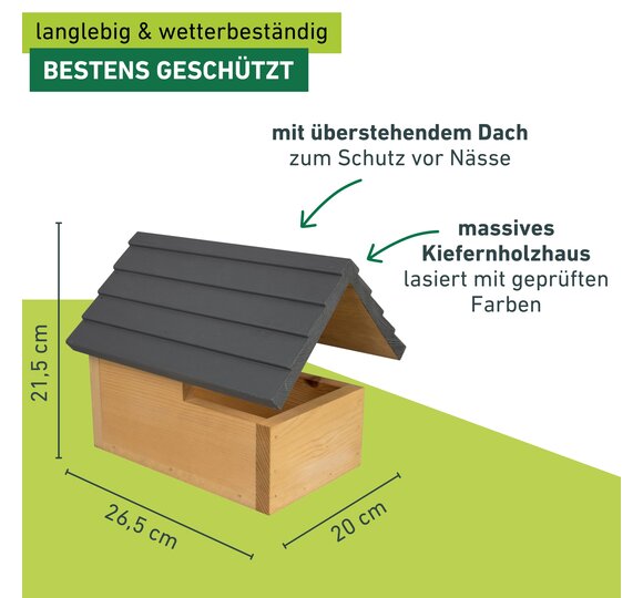 - SINNVOLL GESCHÜTZT – Massives Kiefernholzhaus mit überstehendem Dach als Regenschutz für den Nachwuchs. Lasiert mit geprüften Farben für bessere Wetterbeständigkeit und längere Haltbarkeit.