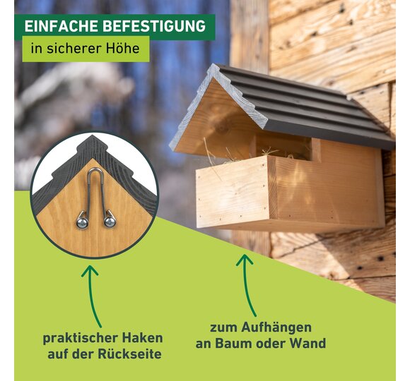 - SPEZIFISCHE NISTHILFE FÜR WILDVÖGEL – Sicherer Brutplatz für heimische Singvögel mit Vorliebe für halboffene Nistkästen
