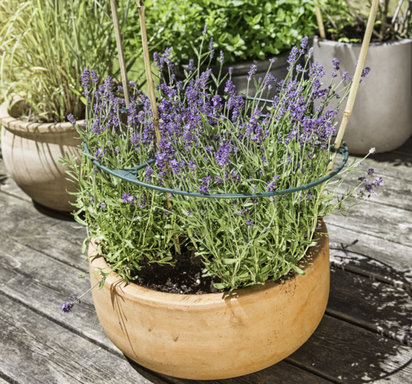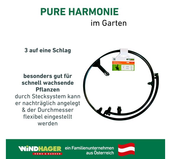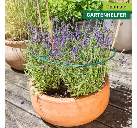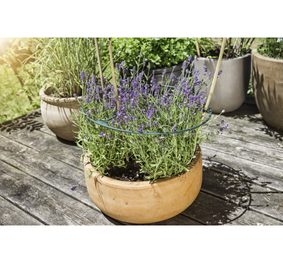 Der Ring gibt der Pflanze Stabilität und wächst mit ihr mit. Durch ein Stecksystem kann er auch nachträglich angelegt und der Durchmesser flexibel eingestellt werden. Besonders gut geeignet für schnell wachsende Pflanzen.