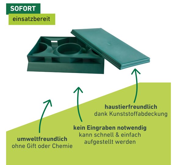 - KEIN EINGRABEN NOTWENDIG – Die Falle kann schnell und unkompliziert aufgestellt werden
