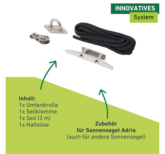 Zubehörartikel zu Sonnensegel Adria sind auch für andere Sonnensegel verwendbar.