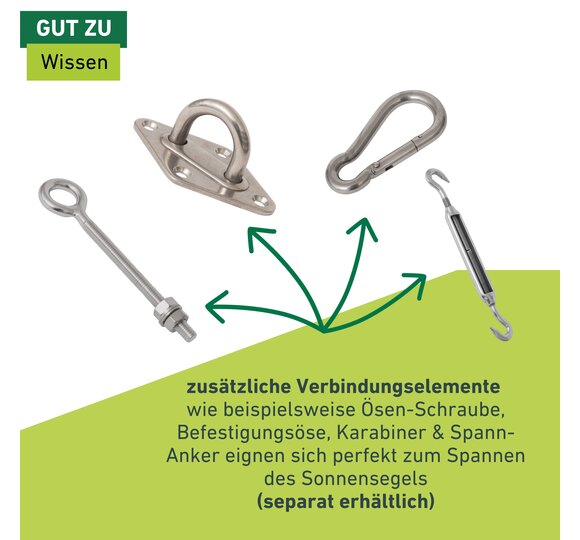 • PRAKTISCHES ZUBEHÖR - Set zum einfachen Auf- und Abspannen von Sonnensegeln