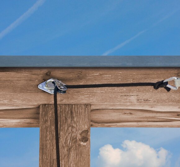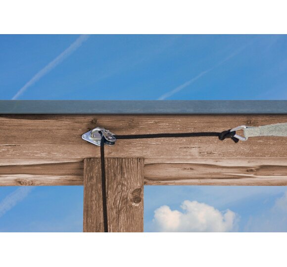 Einfaches Spannen mittels Umlenkrolle. Aus Edelstahl.