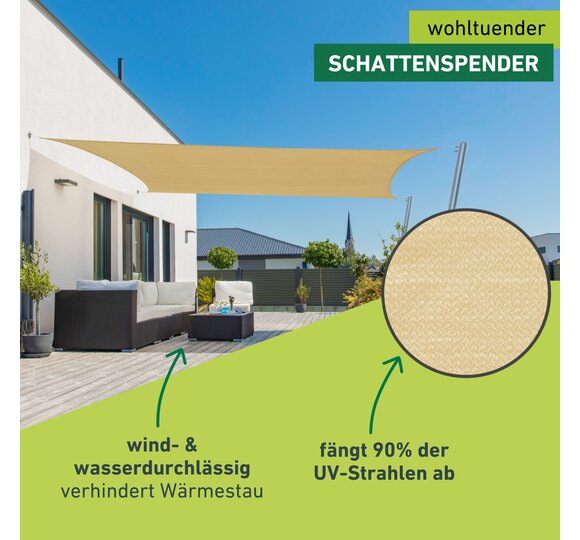 - LUFTIG LEICHTER SCHATTEN - Rechteckiges Segel zur Beschattung von Garten, Terrasse oder Balkon