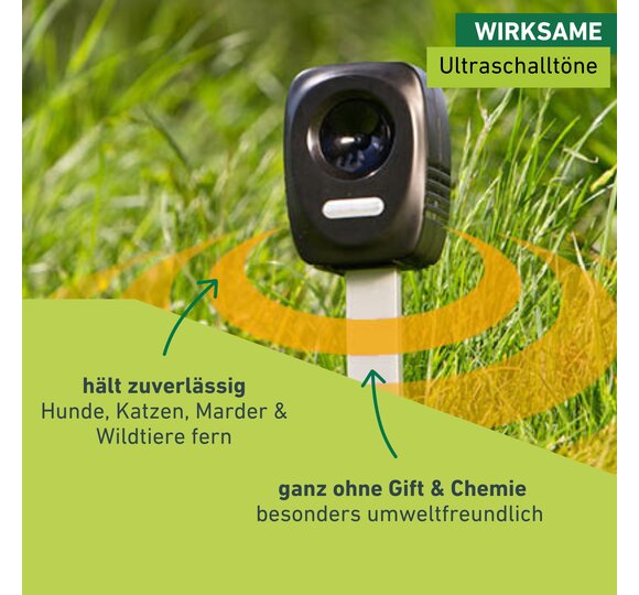 - TIERFREUNDLICHE VERTREIBUNG – Hält Hunde, Katzen, Marder und Wildtiere zuverlässig aus Ihrem Garten fern