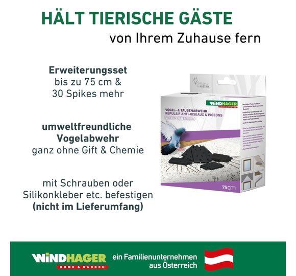 - ERWEITERUNGSSET FÜR NOCH MEHR SCHUTZ - Mit diesem Set wird die Windhager Vogel- & Taubenabwehr um bis zu 75 cm und 30 Spikes erweitert