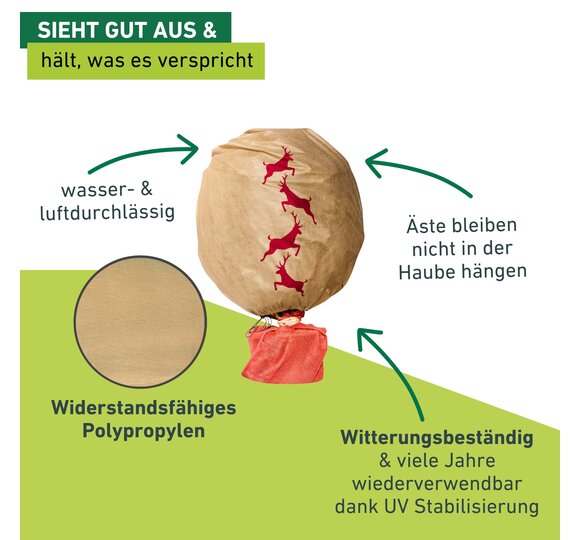- DEKORATIVE VLIESHAUBE – Die Haube mit Hirschmotiv schützt vor Frost und schafft einen dekorativen Hingucker im Garten