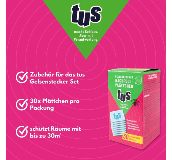 - PRAKTISCHES ZUBEHÖR – Nachfüll-Plättchen für das tus Gelsenstecker Set