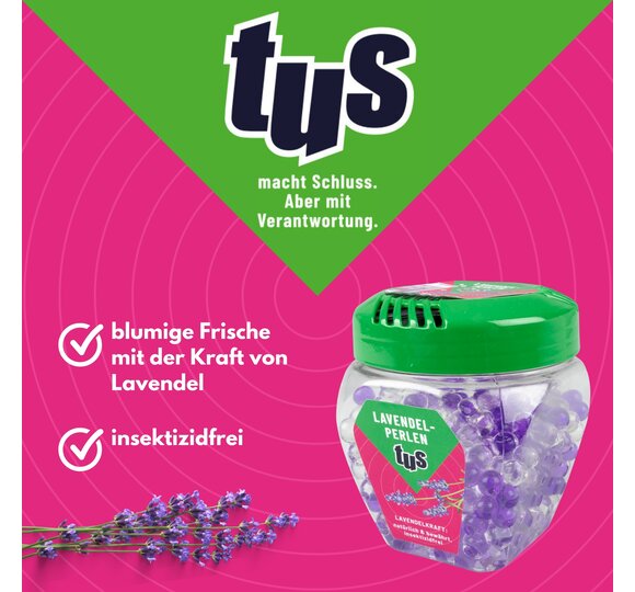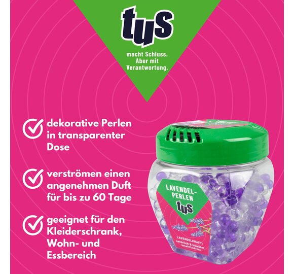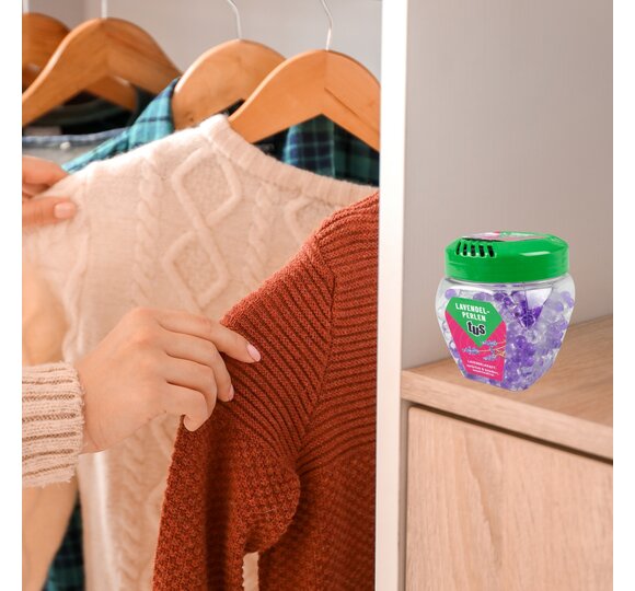 Die praktischen Lavendel Perlen mit angenehm zartem Duft sind die ideale Wahl für alle, die insektizide Wirkstoffe ablehnen. Die transparente Dose mit den dekorativen Perlen kann einfach im Kleiderschrank sowie im Wohn- oder Essbereich platziert werden.