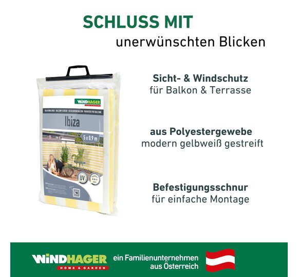 06147 Balkonbl. IBIZA 0,9x5m, gelb/weiss Ansehen
