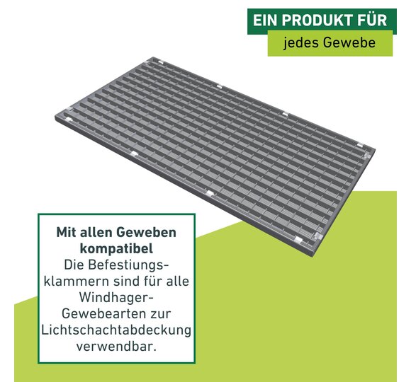 - MIT ALLEN GEWEBEARTEN KOMPATIBEL – Für alle Windhager-Gewebearten zur Lichtschachtabdeckung verwendbar