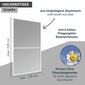 - STABILER RAHMEN - aus pulverbeschichteten Aluminiumprofilen in matter Ausführung, eine Mittelsprosse gibt extra Halt. Faserverstärkte Eckverbinder mit Schnittkantenabdeckung. Umlaufend schützende Dichtungsbürsten.