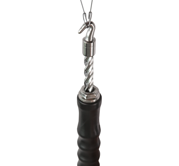 Benutzerfreundliches Drillwerkzeug zum Verbinden von Zäunen oder Gittern. An dem an der Spitze angebrachten Haken werden die zu verbindenden Drahtenden in Ösenform eingehängt und durch Ziehen verdrillt. Es ergibt sich eine erhebliche Zeitersparnis im Vergleich zum manuellen Verdrillen. Die Handhabung ist absolut gelingsicher. Das Werkzeug liegt mit Hilfe des gummierten und daher rutschfesten Kunststoffgriffes sicher und fest in der Hand.