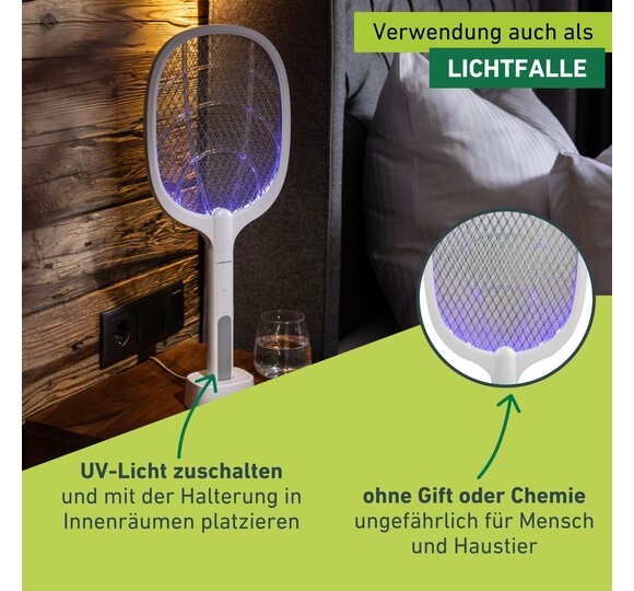 - CLEVERES 2-in-1 PRODUKT - Fliegenklatsche und Lichtfalle in einem, ideal gegen Fluginsekten wie Fliegen, Mücken und Motten