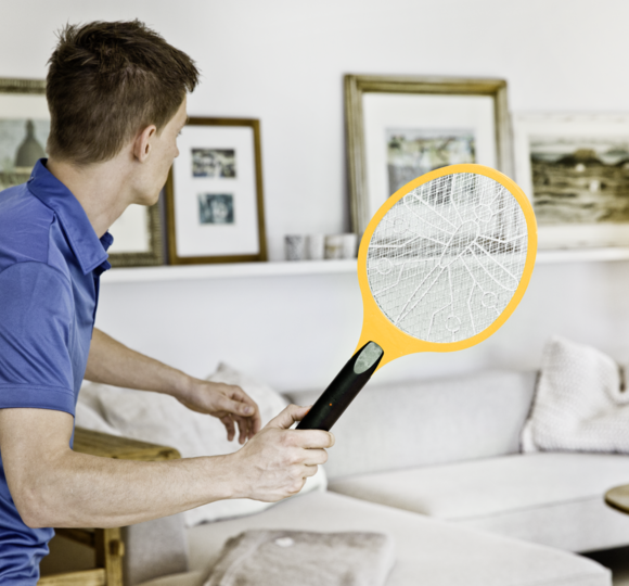 Fluginsekten wie Fliegen, Mücken, Motten und Wespen können ziemlich nervig sein. Die Jagd mit einer klassischen Fliegenklatsche kann ganz schön mühsam werden, besonders wenn man in Ruhe essen möchte. Eine elektrische Fliegenklatsche bietet hier die ideale Alternative zur herkömmlichen Fliegenklatsche. Mit nur einer Berührung der elektrisch betriebenen Fliegenklatsche werden die Insekten gift- und chemiefrei erledigt. Das Spannungsdrahtgitter ist elektrisch geladen und gibt bei Kontakt mit einem Insekt einen kleinen elektrischen Schlag ab. Von diesem Schlag werden die Fluginsekten sofort getötet. Die Fliegenklatsche in sportlicher Racket-Form ist einfach in der Handhabung und äußerst effektiv. Auch auf Ausflügen wie beim Angeln oder Zelten ist die Fliegenklatsche SLAM stets ein guter Begleiter.